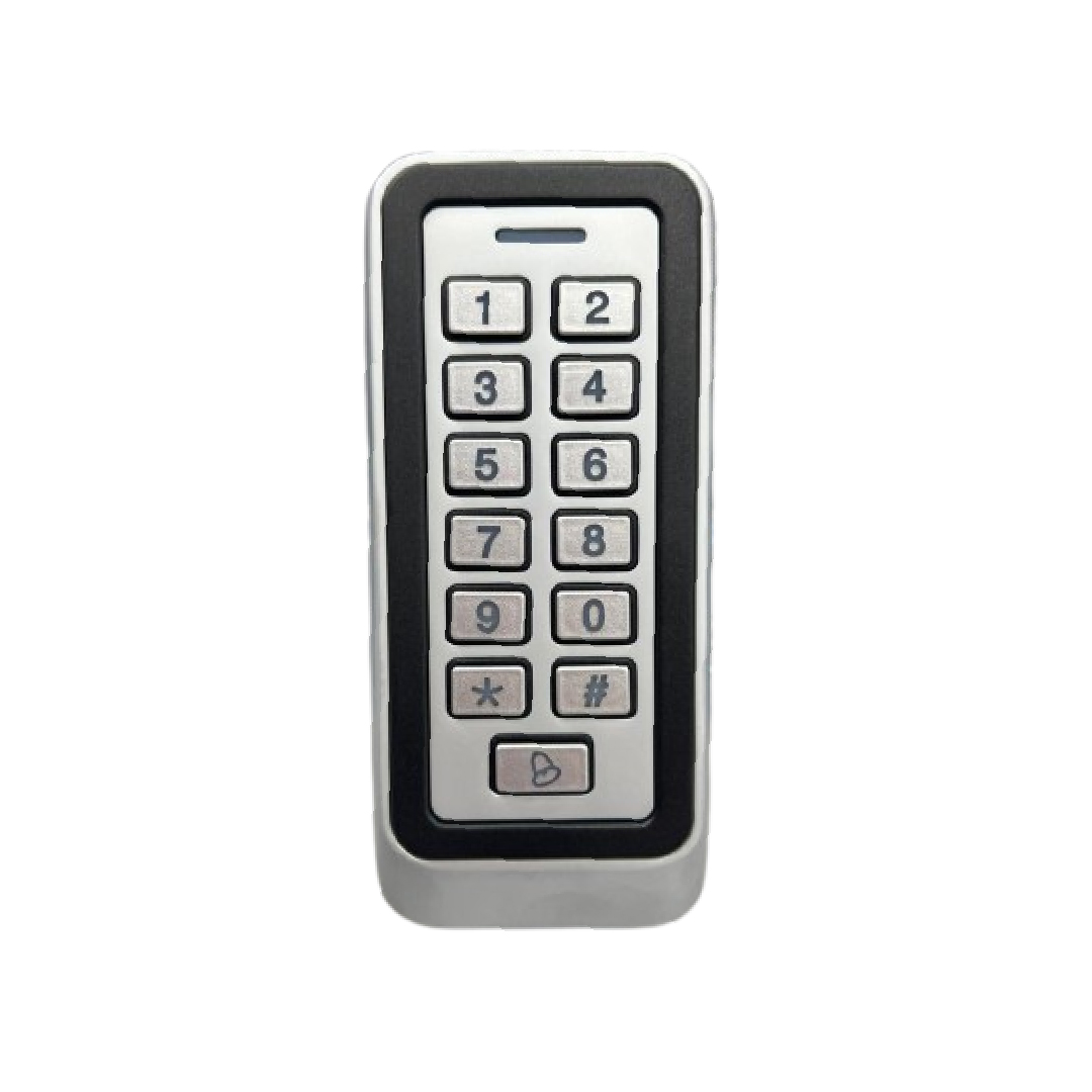 Control de acceso autónomo, IP66. uso interior y exterior, teclado retro iluminado, hasta 8000 usuarios, recibe lectora esclava: Wiegand 26 y 34 bits. autenticación por Tarjeta RFID ( 125 kHz EM ) o contraseña ( únicamente de 6 dígitos ). Distancia: 5-10 cm,12vdc, timbre de puerta. dimensiones: 126,5*54*21mm. peso: 500g.